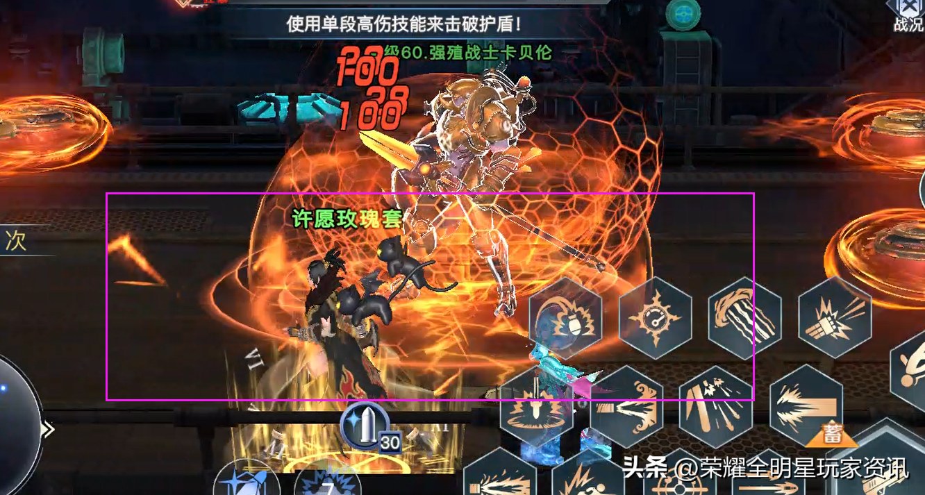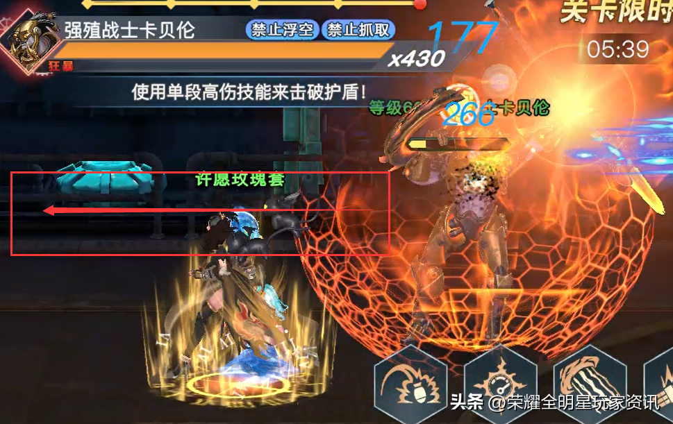 玩家可以通过击碎Boss脚下的能量场护盾来中止Boss的这个技能。