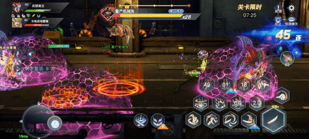 当机械兔血量较低时,更会进入无敌状态并在场地中间进行跳砸,必须一人一个罩子才能规避兔子伤害(2人站在同一个防护罩会失效),等待机械兔3次跳砸后立马用硬控打断即可破防对其疯狂输出~
