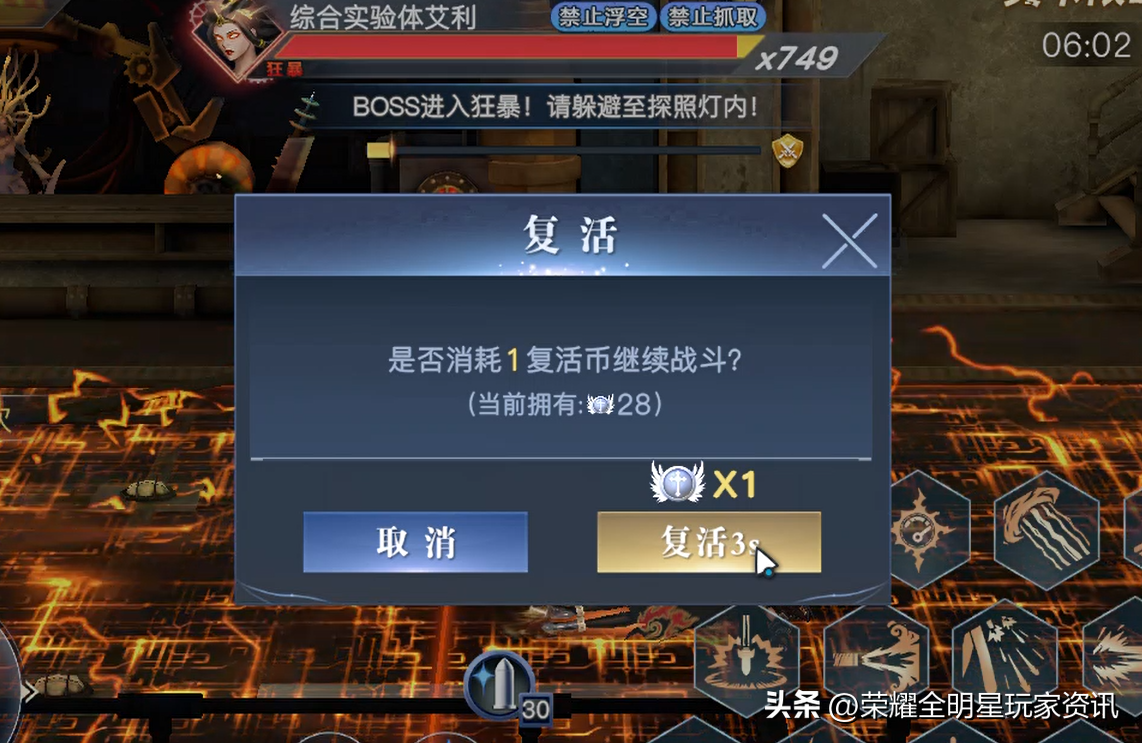 由于歼灭电流的持续时间刚好10秒,并且复活弹窗也提供了较短缓冲时间,所以我们在被歼灭电流击杀后拥有足够的时间在复活界面等待歼灭电流结束。