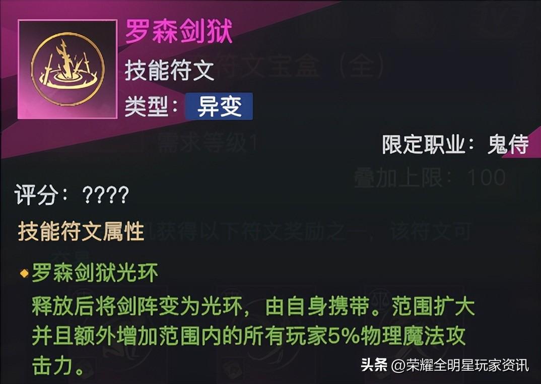 炎狱剑主的“罗森剑狱”异变与暗夜刀锋相同,这里南瓜对该符文的看法是——如果有空余的技能栏位,可以选用该符文,但如果技能栏位不足的话南瓜更建议优先选择其他更重要的技能;毕竟炎狱剑主与暗夜刀锋的职业特性不同,我们要更加强调个人输出的发挥而不是团队效果。