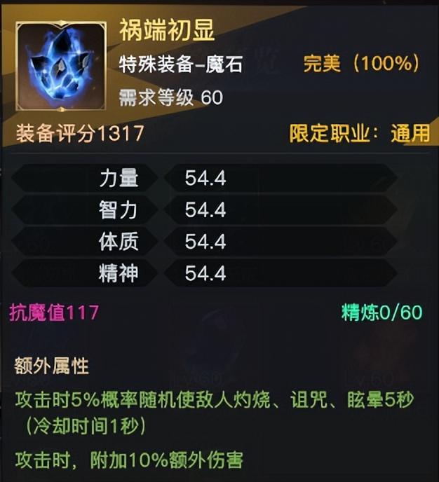 攻击附带10%额外伤害,概率造成三种异常状态(灼烧、诅咒、眩晕)的其中一种,这一件辅助效果就相对弱一点,但也算是给纯体质奶妈补足一点单刷能力,鸡肋鸡肋,食之无味,弃之可惜