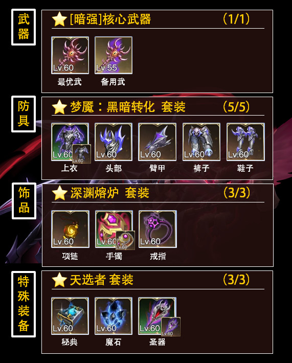 特殊装备:梦魇起源+ 梦魇无眠+ 梦魇介质