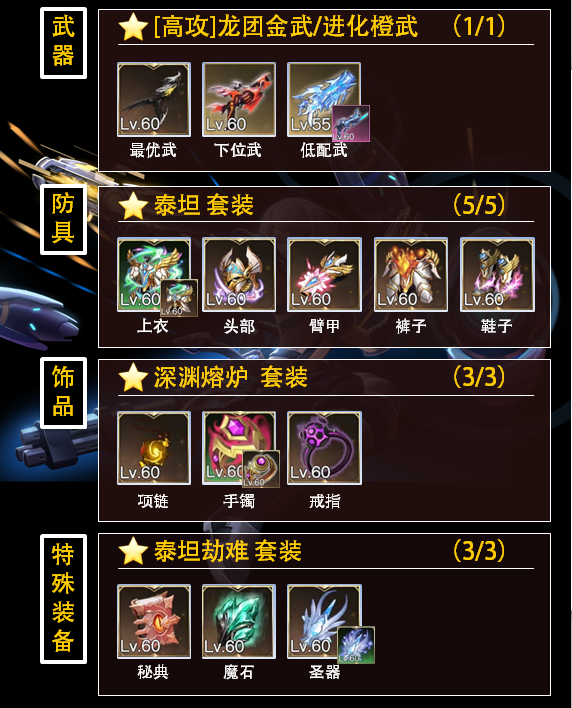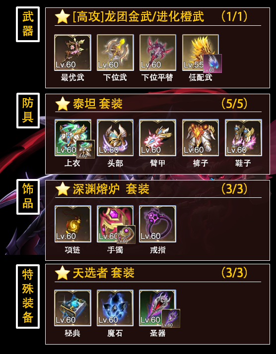 解析:相比梦魇套来说,凑齐该套装备便轻松多了,并且在进化过程中60级职业套和武器均有宝宝增益效果,混团伤害绰绰有余。