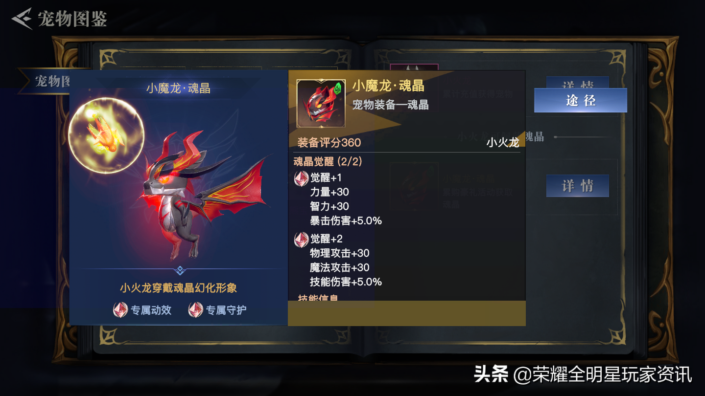 小火龙搭配魂晶的属性与花萼精灵相近,细化对比稍微会弱一点点(几乎没差距),但是小魔龙和花萼精灵的被动效果十分优秀,并且它们属于不同宠物可以同时装备,追求极限的玩家还是有必要考虑入手小火龙的。