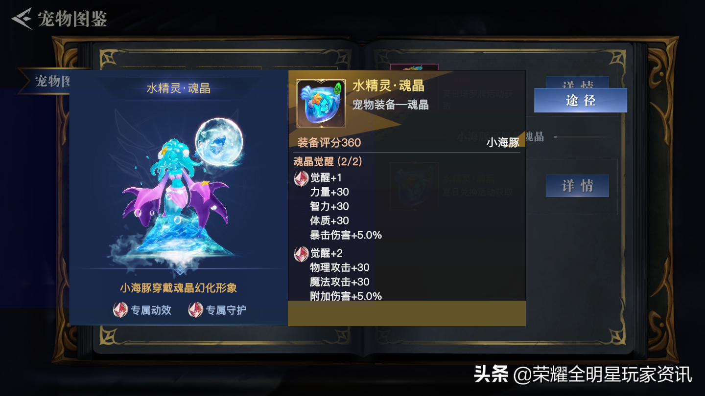 小海豚经过魂晶的强化后,可以为团队带来显著的爆发提升,有年兽的搭配下更是如虎添翼,十分适合用于在输出机会有限的高难度副本中使用,精英玩家千万不要错过这只宠物。