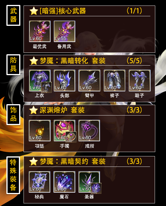 特殊装备:梦魇起源+ 梦魇无眠+ 梦魇介质