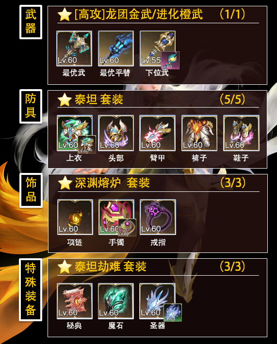 解析:前期5件职业套强化[启示:惩戒]技能效果,成型后依靠多元素混伤也能打出不错效果。。