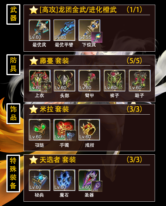 解析:藤蔓套搭配米拉套和天选者套,三辅助友军增益BUFF拉满,本身输出不低的同时还能打出破甲,惩戒模式下带上抬血用的[神佑光华阵],有奶有输出有增益团本推图效率嘎嘎高