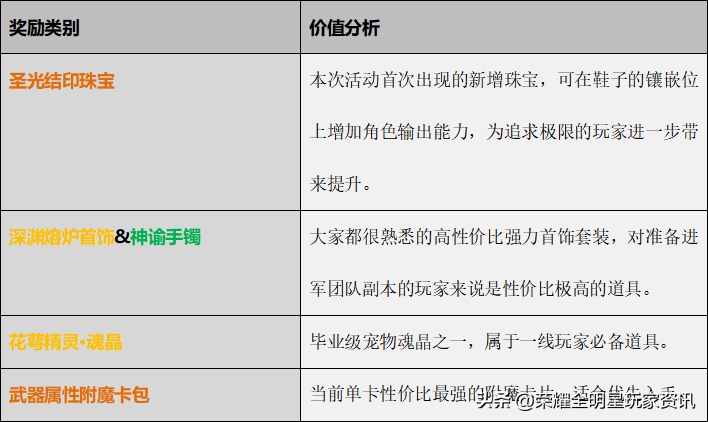 最后,本次活动的“圣光结印珠宝”性价比较高,建议大家优先入手。