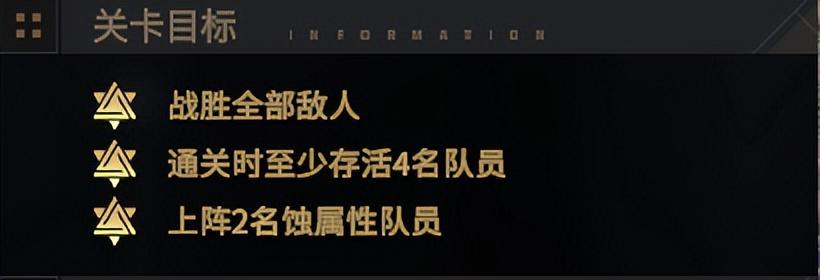 关卡目标:战胜全部敌人;通关时至少存活4名队员;上阵2名蚀属性队员