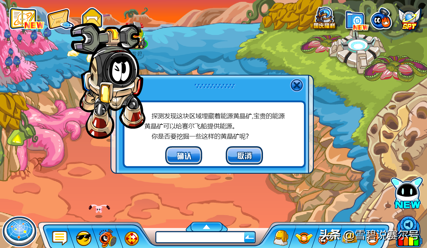 屏幕左下角有一个“雷达显示屏”,这其实就是地图,点击打开,可以直接到达宇宙世界的五个星球和赛尔号飞船的各个舱室。来到“船长室”,点击船长,他指示你去查看《飞船手册》,看完知道了赛尔号的由来。