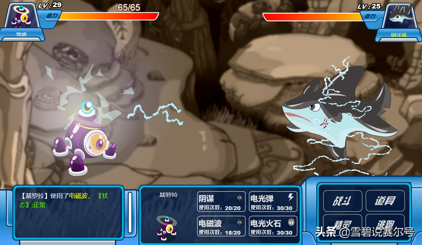 装备上(只穿潜水的三件套)以后通过地图来到海洋星浅水区——海洋星深水区——海洋星海底。远处有个洞,一只鲨鱼虎视眈眈…………更可怕(⊙o⊙)!点击后开始战斗。