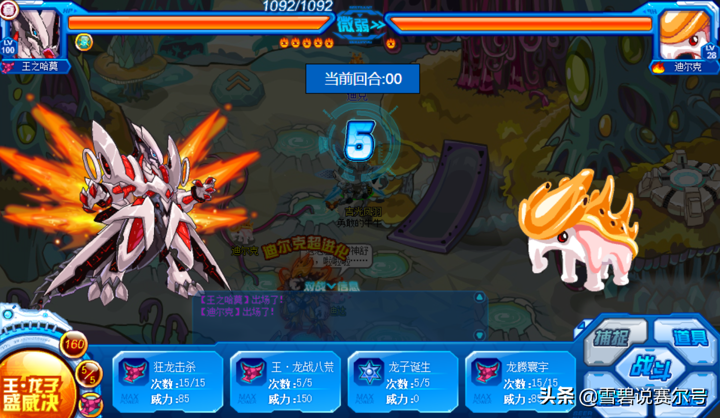 【王·龙子盛威决】必中;攻击时造成的伤害不会出现微弱(克制关系为微弱时都变成普通);每次命中对手还会降低对手下只出战精灵最大HP的13%,最多降低52%;自身每处于一种能力提升状态,此技能威力提升30;核心技能,凭借绿火将长期适用。