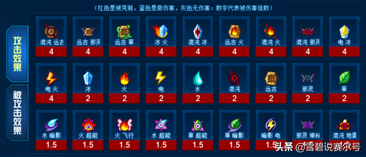 我们依旧前面的克制面,增加一个轮回系克制面。轮回系现在主打4倍克制有10个,其中热门就有混布属性、天尊属性、六界属性、时钟诛机属性。2倍克制主打6个,比较常见的就只有索跟次王。