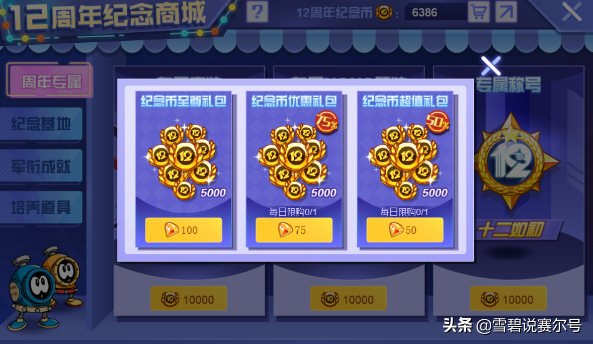 还有一点,如果有玩家打算用钻石买次数,建议一定要先去12周年纪念商城先去买右上角的小黄车去看看,有一个每日限购50钻5K的币。比起直接买的15钻,要多出1K5的币,再攒500可以多抽两次,相对来说还是比较划算的。