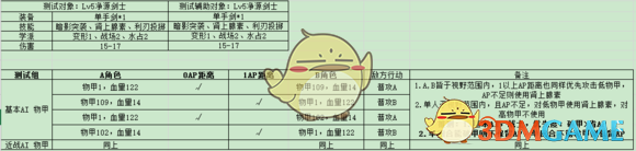 1个敌对单位(测试对象),2个己方单位(测试辅助对象,分别称为A角色和B角色)