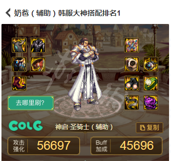 奶爸的装备搭配分为辅助和输出