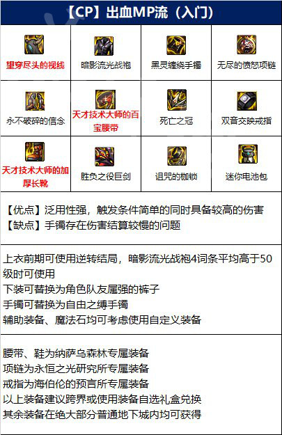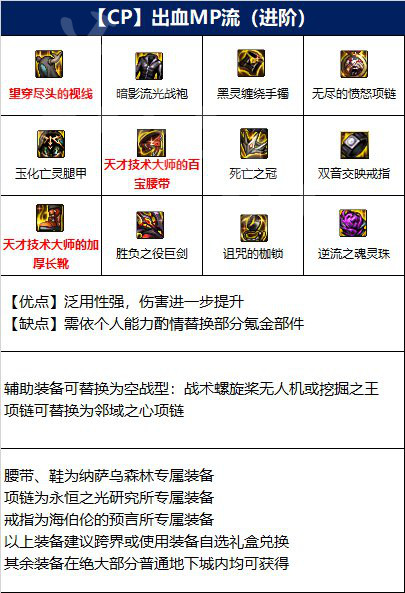 在入门级的出血MP流的基础上替换部分氪金部位,提升出血MP流的伤害上限,因氪金条件较为苛刻,可根据自身实际情况进行替换。