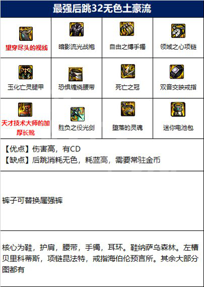 非土豪不选的流派,伤害高是真的高,氪金也是真的氪金,除了要拥有120件时装,背包常驻4亿金币外,无色的花销也是如流水般,连后跳一下都要32无色哦!