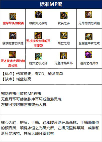 经典MP流搭配,有伤害,有CD,触发简单,没有什么副作用,缺点就是比较费蓝药。