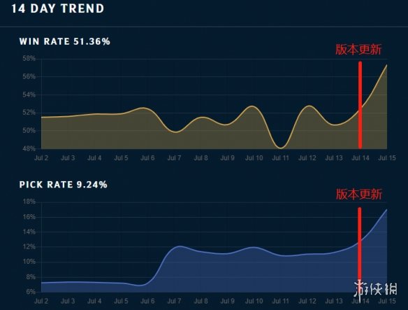 为了保证数据的可靠性,已经是只取大师段及以上的排位数据了,但即便如此,龙女依旧保持着极高的登场率,并且胜率也相当夸张。一般来说,一个英雄的登场率超过14%左右,且胜率超过52%左右,就可以视为是版本T1的存在。但龙女的两项数据基本都远超标准,表现相当变态。