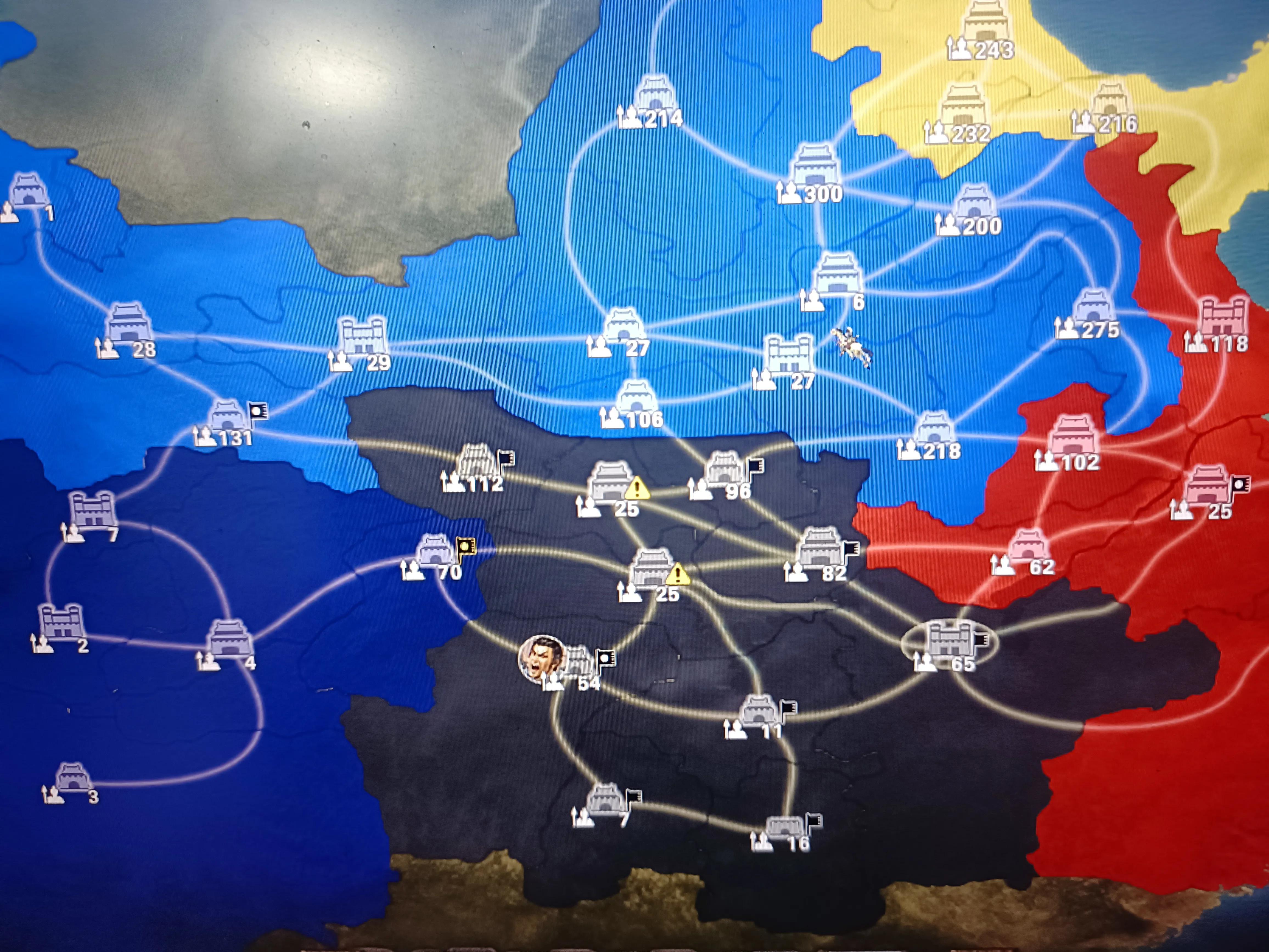 最高难度和普通难度最大区别个人觉得就是外交。高难不结盟的情况下除非出身四角,不然就是被四面合围。如果开局在曹老板或者袁绍孙家附近,还是趁早拿下要不就结盟。至于刘备,在进川之前不是开挂的历史搁哪都是被人灭的。