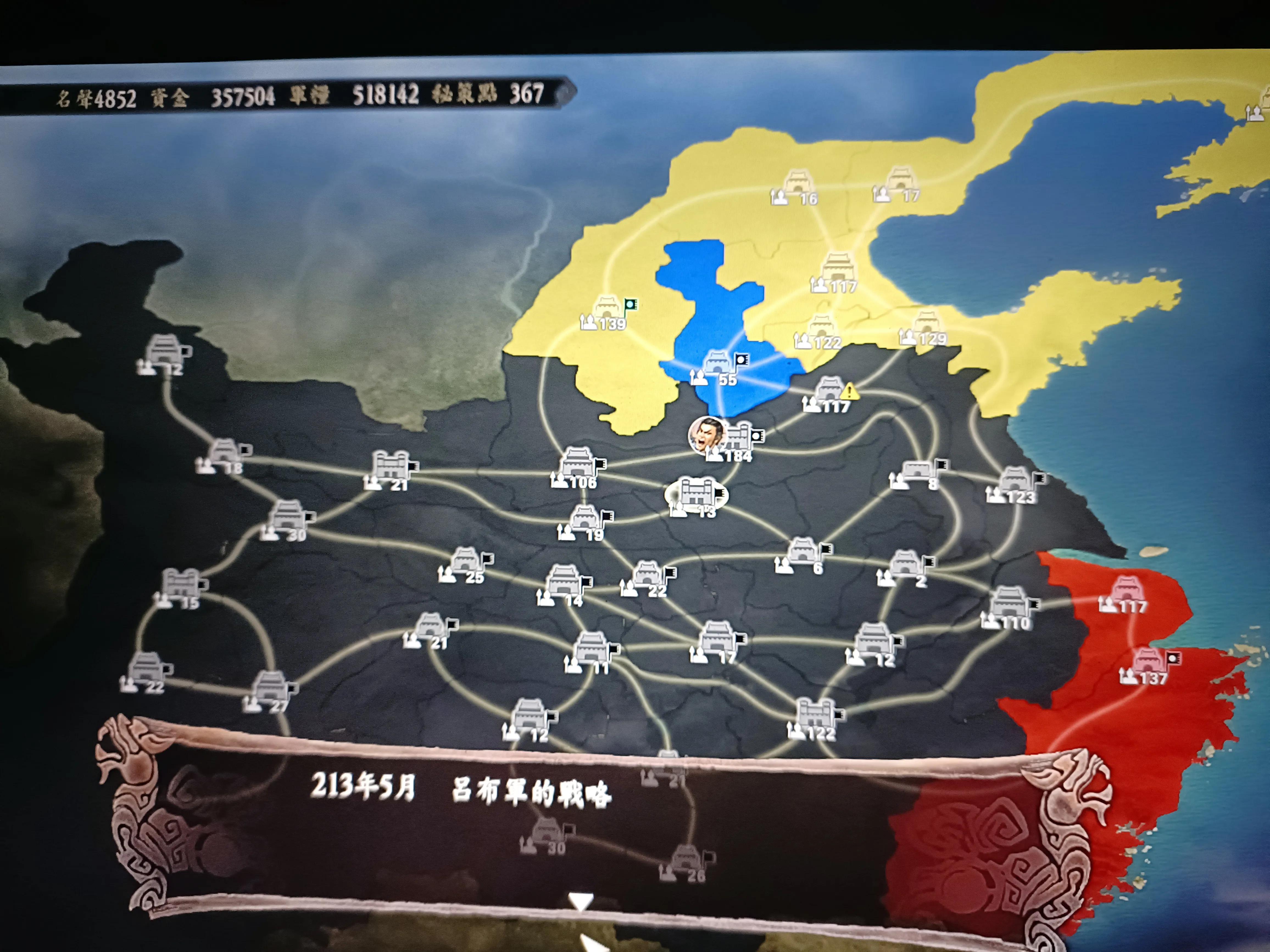 可以说以吕布属下文武在这种夹缝下只有一条路,打刘备。然后看地形,下邳小沛汝南新野,一条横线,而且每个城出征都只能单打别人有援军的城。最悲催的是,曹老板有绝道