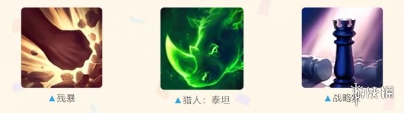 其次带残暴,补充前期的伤害,最后两行可以带猎人:泰坦和战略家。猎人:泰坦成功gank后会有韧性加成,而战略家在推塔或者拿龙后经济优势较高,都是不错的选择。