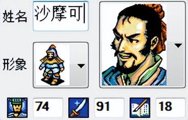 ④沙摩可(三国演义、三国志应该是沙摩柯)。游戏中武力设定为91,兵种是异民族。
