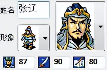 ③张辽,游戏设定中他的能力非常“水桶”,统率87、武力90、智力80,文武全才,兵种是长兵。