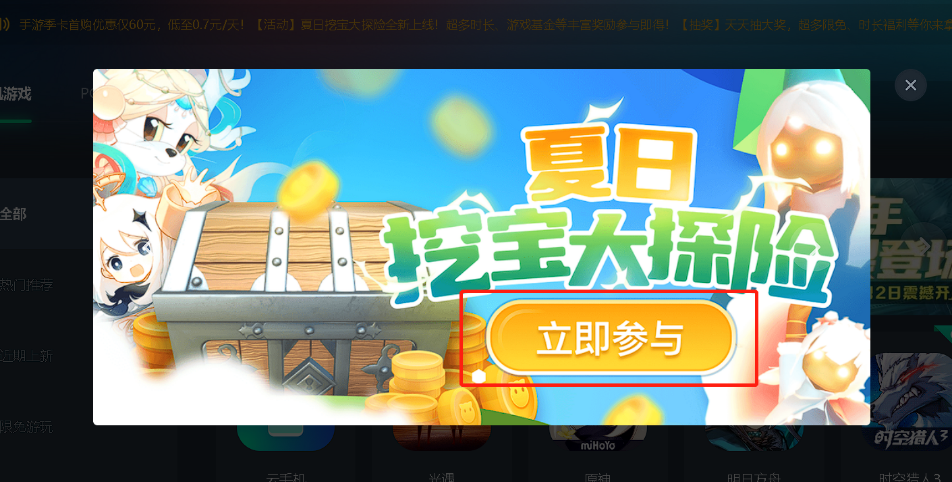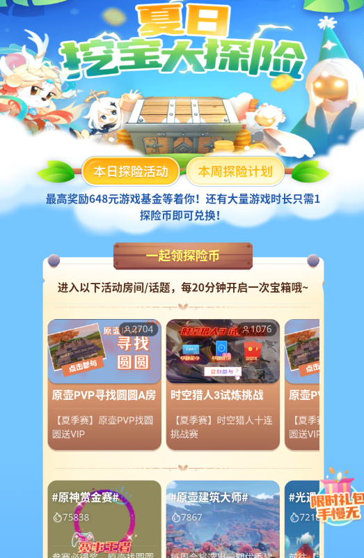 现在通过网易云游戏平台还有暑假挖宝探险活动,通过签到加入话题等都可参与活动,有几率获得648元游戏基金,还有免费时长、游戏基金等丰富奖励你来兑换!