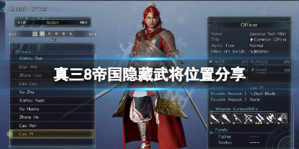 真三国无双8帝国隐藏武将在哪?很多小伙伴可能还不清楚游戏中的隐藏武将在哪吧,今天小编给大家带来真三8帝国隐藏武将位置分享,快来看一下吧。