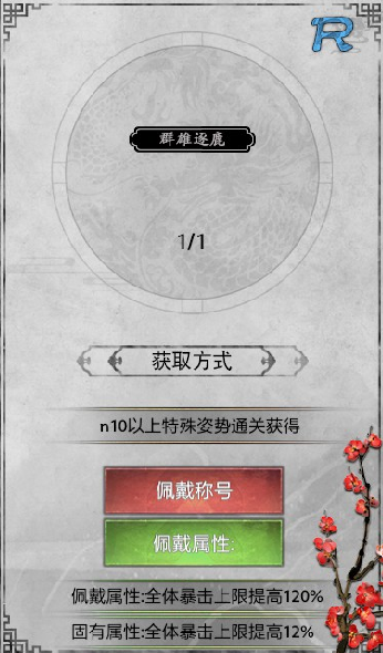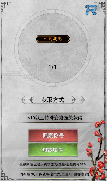 这几个隐藏成就的固有属性也就一般,因此推荐只完成赌怪和把酒临风即可,后续等金砖富裕了在考虑完成。