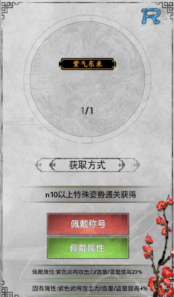 解锁方式:在n10以上难度中只上场紫色武将并通关即可解锁此隐藏成就。