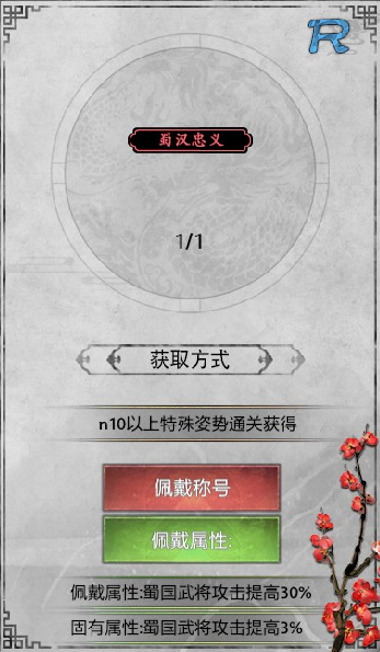 解锁方式:在n10以上难度中只上场蜀国武将并通关即可解锁此隐藏成就。
