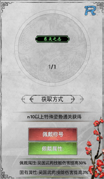 解锁方式:在n10以上难度中只上场吴国武将并通关即可解锁此隐藏成就。