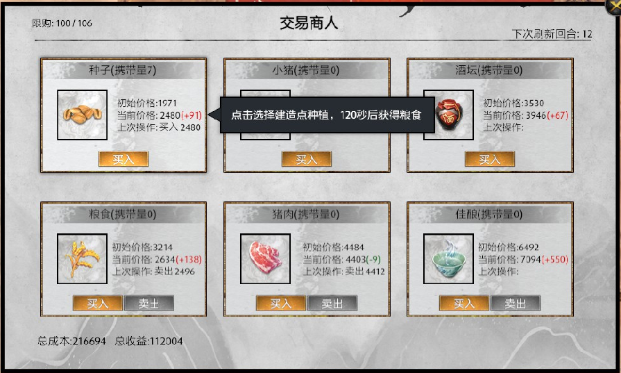 完成这四个隐藏成就主要是要在交易商人这里购买原料生产并出售或使用,这里要注意的是佳酿是有30S的使用 CD的,而一局游戏也就25分钟左右,要喝40瓶佳酿就得全程不停地喝,不然很容易功亏一篑!