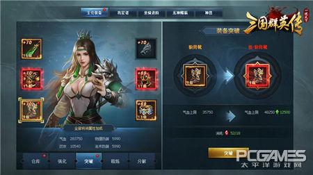 突破可以提升全部将领的属性加成,依然是可以分别提升武器、护手、铠甲、头盔、鞋子、腰带六大部位,不过普通装备无法进行突破,只有橙色装备才能突破,突破需要消耗血精石,此物品可通过参与活动获得。