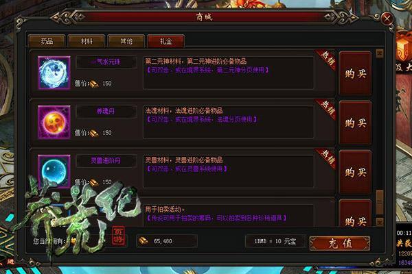 在商城内,玩家可购买一气水元珠,玩家可选择消耗30元宝或150礼金进行购买,购买数量没有限制。