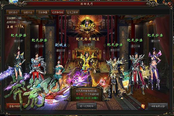纪府争夺战:在活动开启后,等级达到56级且加入宗族的玩家可参与纪府争夺战。场景中有不同的战斗经验区域,每隔30秒玩家可获得不同倍数的经验、元液奖励,在场景内存留十分钟以上,在活动结束时还可获得额外奖励。