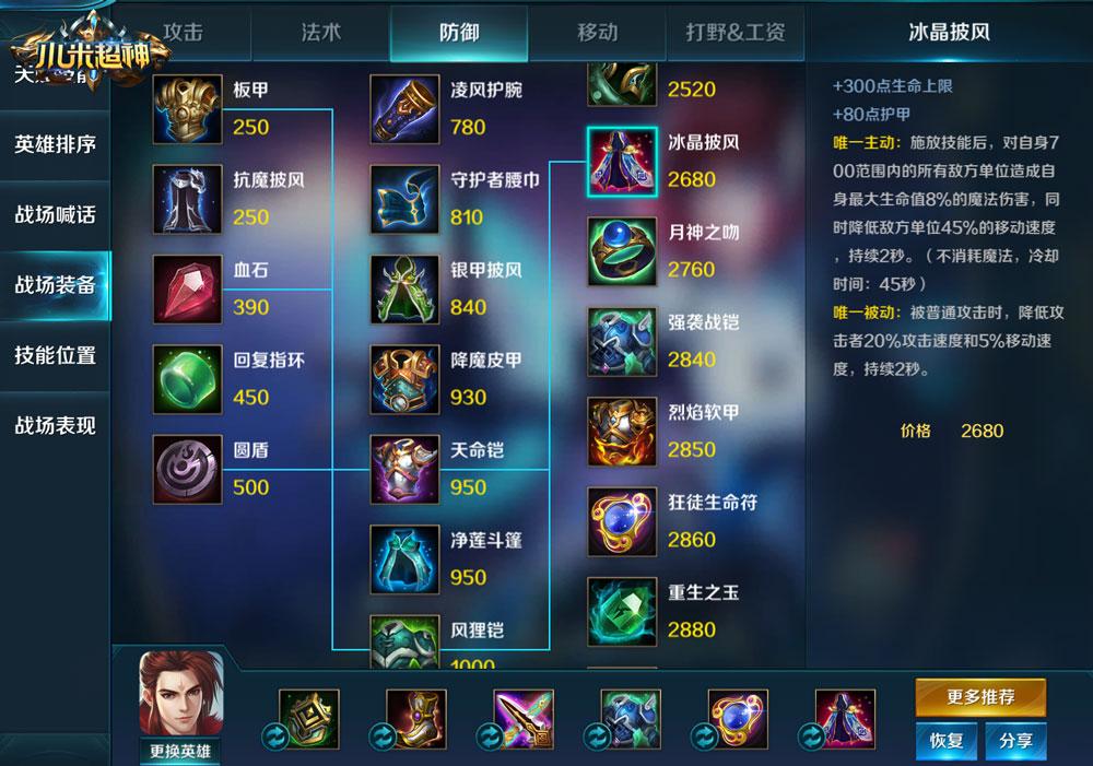 如果想要打出一定的伤害,同时还能起到优秀的辅助作用,可以选择如下出装:护团圣盾+水晶靴+追虹双剑+强袭战铠+狂徒生命符+冰晶披风,后期可以将护团圣盾换成冰川战甲或是月神之吻。如果想要单打独斗,打出高额输出,那么可以选择:噬骨魔刀+水晶鞋+风灵的叹息+刑天巨斧+强袭战铠+追虹双剑。