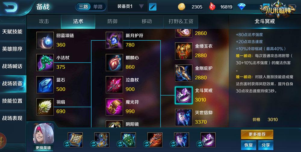 诅咒秘典的被动攻击强化极为契合张角的技能循环,同时也是在前期最能增幅法术伤害的装备。而魔龙侵蚀提供的高额法穿让张角面对抗性高的战士与坦克之时也游刃有余。风灵护膝能够为张角提供进攻和逃生手段,提供的10%冷却缩短也极为亲民。而速出灭世信仰,将为张角带来伤害上的质的飞跃,不仅是张角,也是各路法师的必选之物。