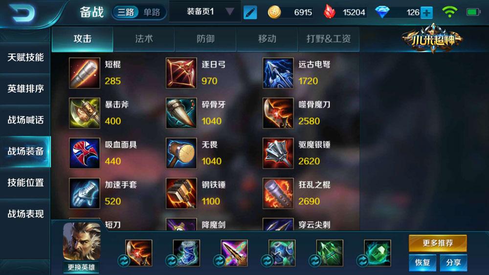 黄忠的出装也较为多变,可以选择较为廉价的噬骨魔刀,狂战靴,再配合强袭战铠,提升攻速,破甲,在前期就能打出不错的效果,这样则拥有强大的推进能力。所以黄忠推进型完整出装为:噬骨魔刀+狂战靴+追虹双剑+强袭战铠+风灵的叹息+重生之玉。