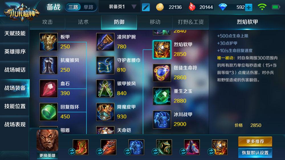 如果需要你来带动节奏,则可以选择将钢铁之力替换成蛮人腰带,高达40%的减缩,无论是抓落单,还是团战开启先手,都极为方便。同时,还可以选择替换成金刚庇护,风灵护膝,都能特化其各个方面,使得其更为完美适合战局。