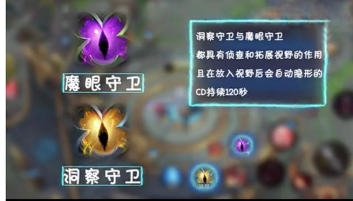 假眼又叫“洞察守位”放置在草丛或者迷雾中,能够增加视野方位,防止被敌人gank。”真眼“又叫“魔眼守卫”,可在战斗商城中购买,真眼的特点就是可以侦查到对方的“假眼”和“真眼”。