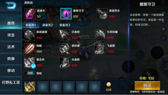 1. 眼的获取:进入战场时玩家自带假眼,开始只有一个,回城自动补给一个,真眼在商场用100金币购买,最多一次带三个;
