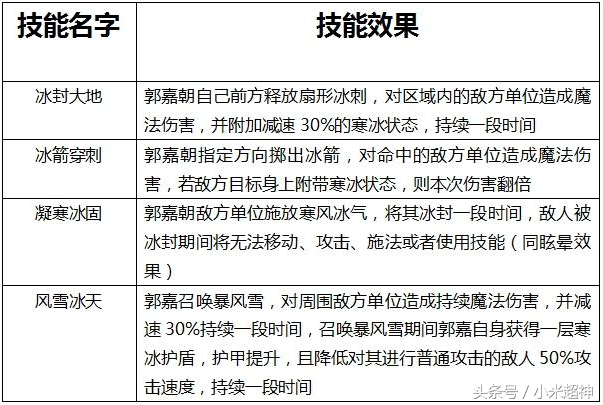 冰封敌人,被作用单位无法移动、攻击和使用技能(同晕眩效果);升级技能增加控制时间;该技能可以瞬发,无施法前后摇;