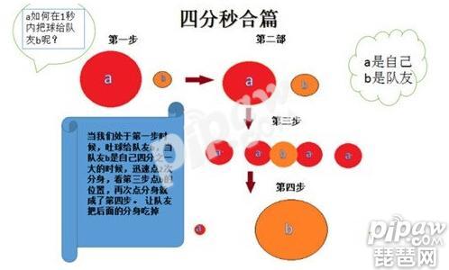 分身后,吐球给队友,直接狂分身,会直接往中间分身,具体如图