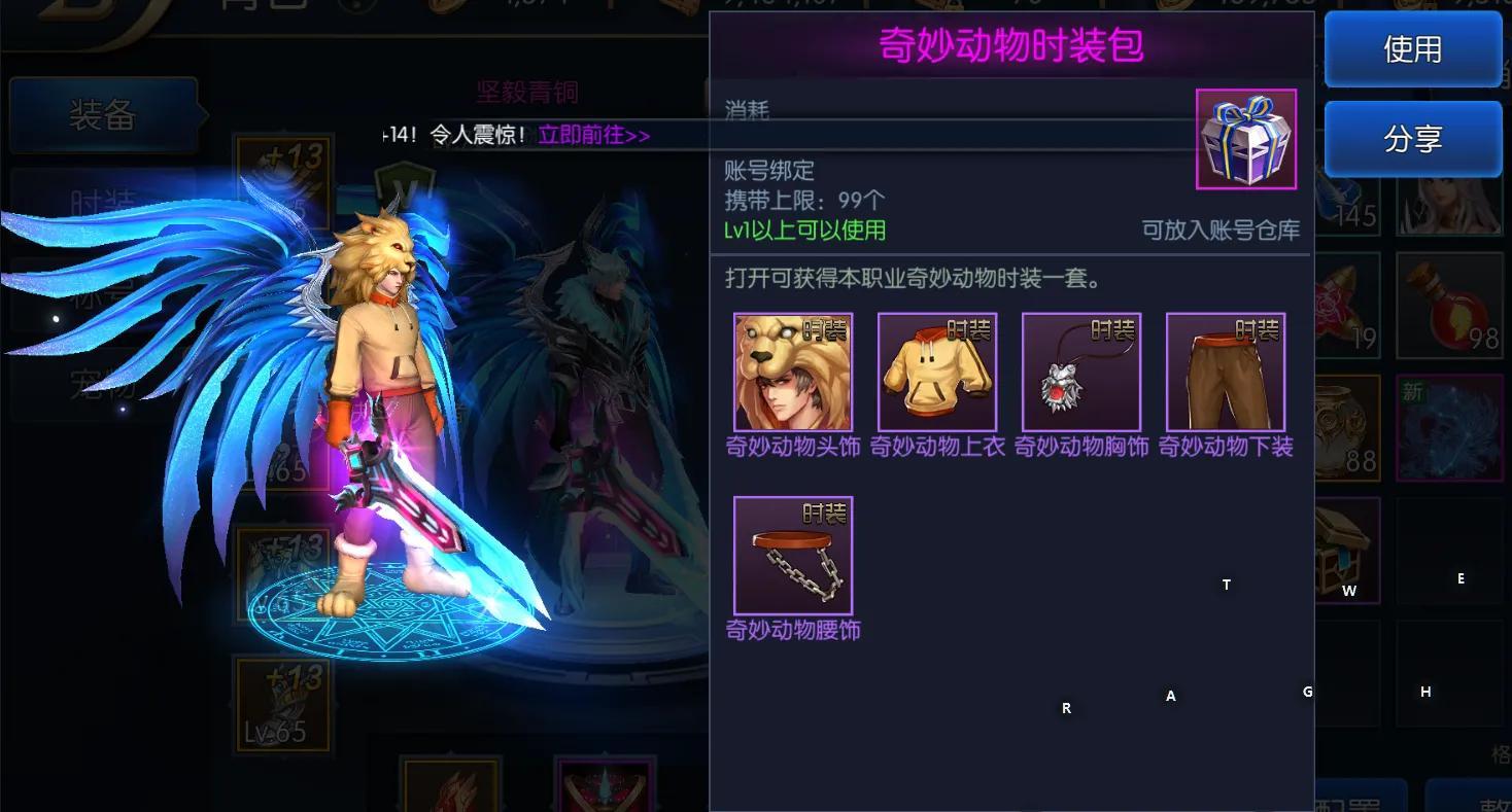新手上线就可以领取新手福利。里面包含70级飞升药水和经验书,可以让新手从1级直接飞升到70级(满级)。另外还有多种福利。上图…