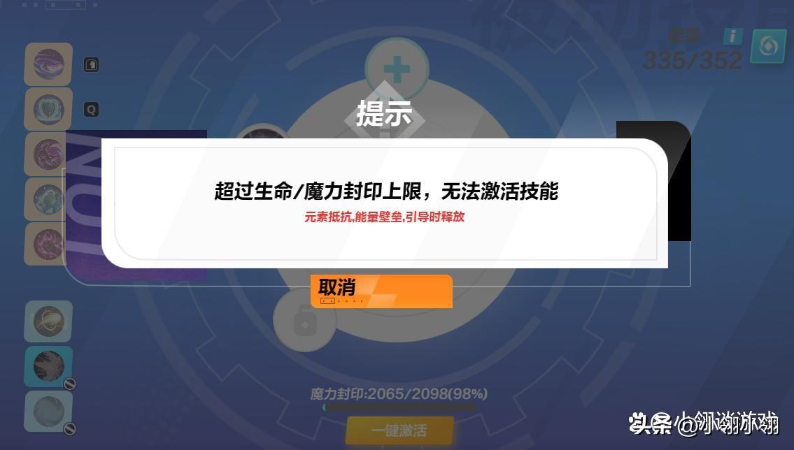 而引起魔力封印的技能,便是对角色非常重要的被动技能(技能栏后三个),或许设计师认为,被动技能一直触发,就得一直耗蓝。虽然蓝量的可使用上限,在这款游戏中并不关键,基本有一点蓝量存在,就足够主动技能释放。但超过魔力封印后,一些被动技能就不能再激活了。